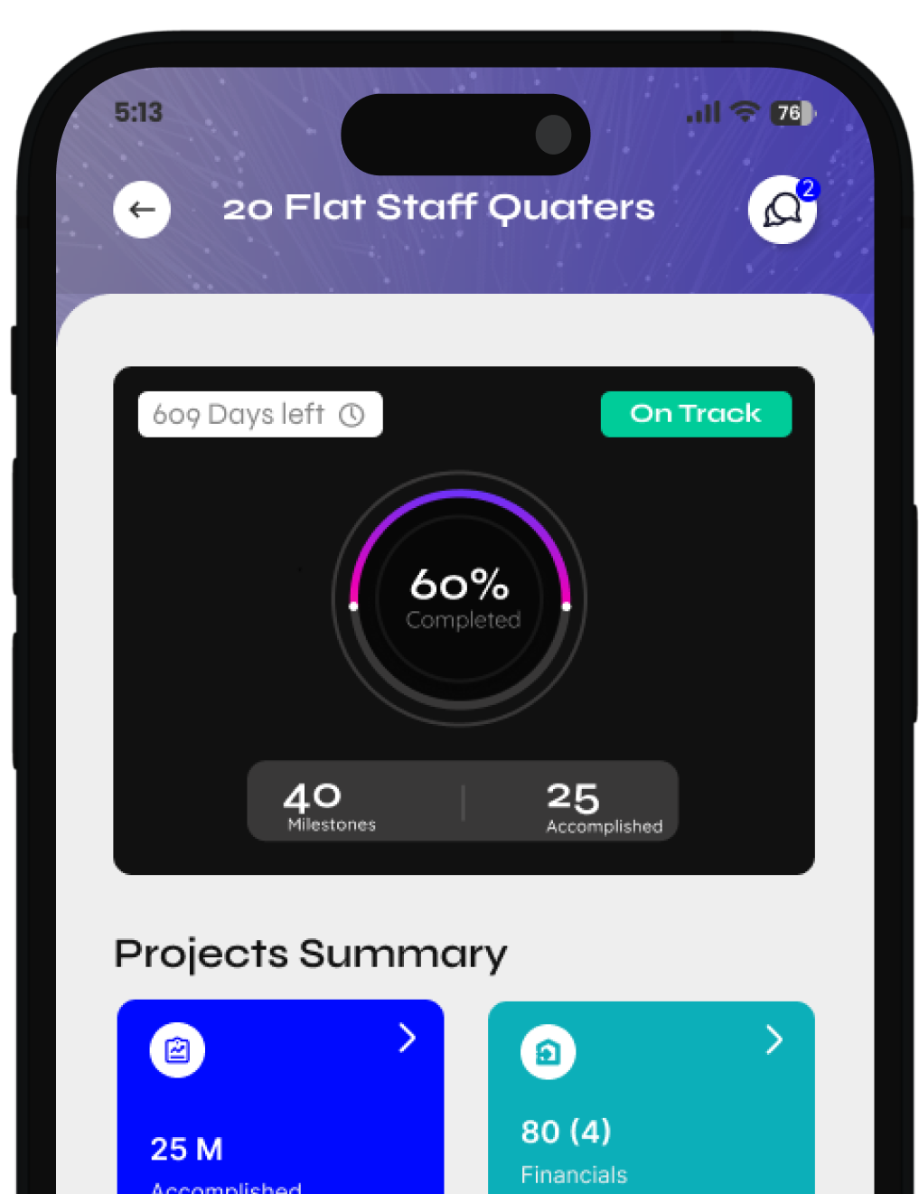 Track project milestones, task completion status in realtime from anywhere in the world. Access realtime project reports from the comfort of your device. -